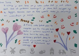 Deze keer deden zelfs zeven teams aan Write for Rights mee! Door studenten van Airport Facility Services, Airport Safety & Security Academy, Airport Tourism Studies, Entree Luchthaven, Izone Airport, Steward/Stewardess en Vliegtuigtechniek werden in totaal 223 groetenkaartjes en 78 brieven verstuurd. Zie hieronder ook wat tekeningen die zij op de groetenkaartjes maakten. Ook werd de petitielijst voor Sonia 74 keer ondertekend. De studenten hoefden alleen met hun voornaam te tekenen plus land (ter privacybescherming).